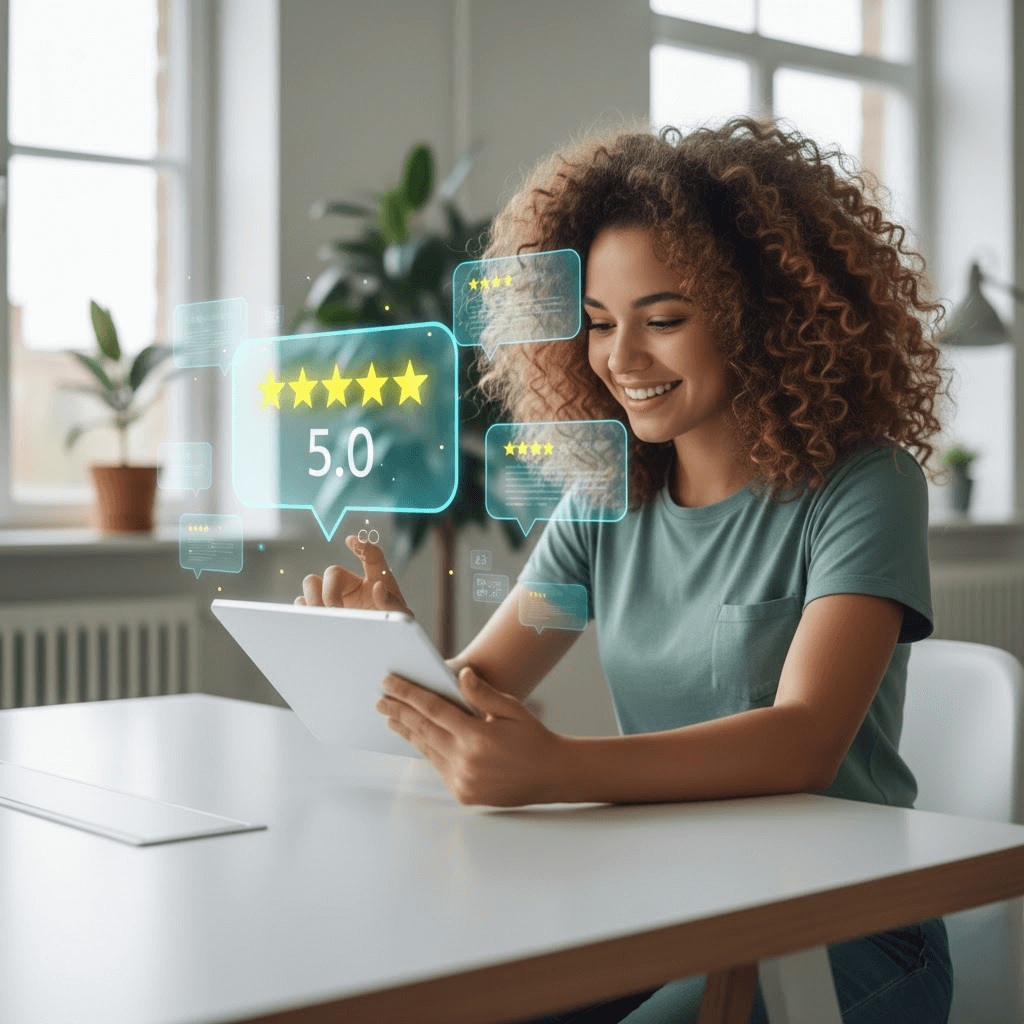 Cada avaliação é armazenada e calculada automaticamente, gerando uma média geral de satisfação.