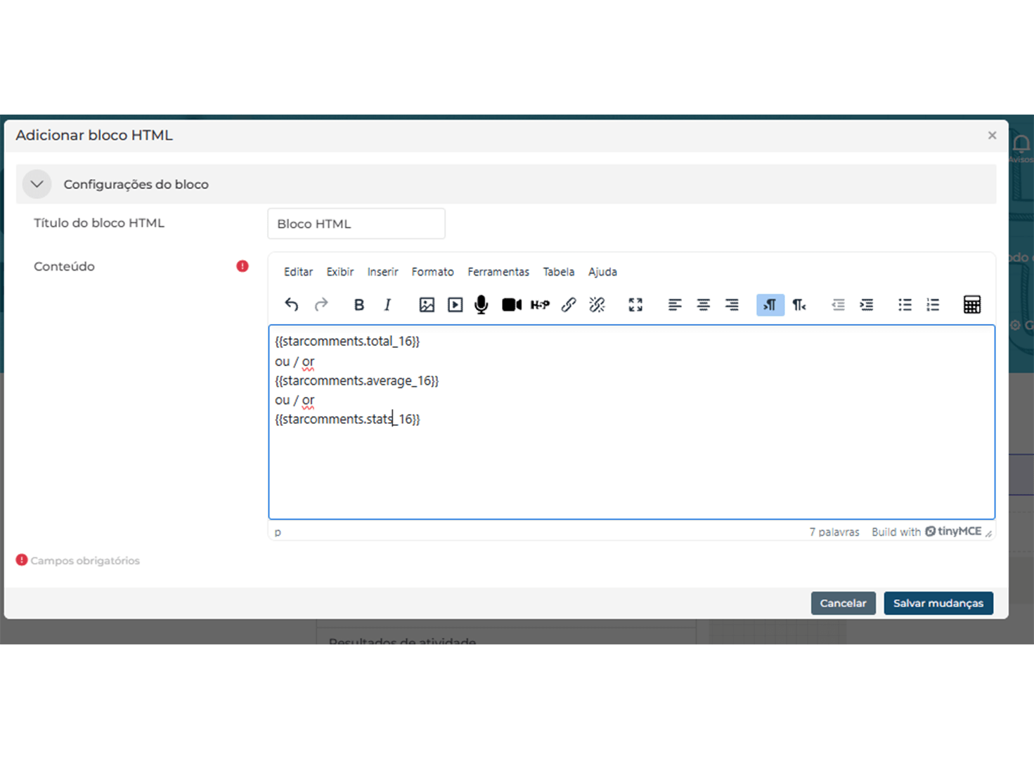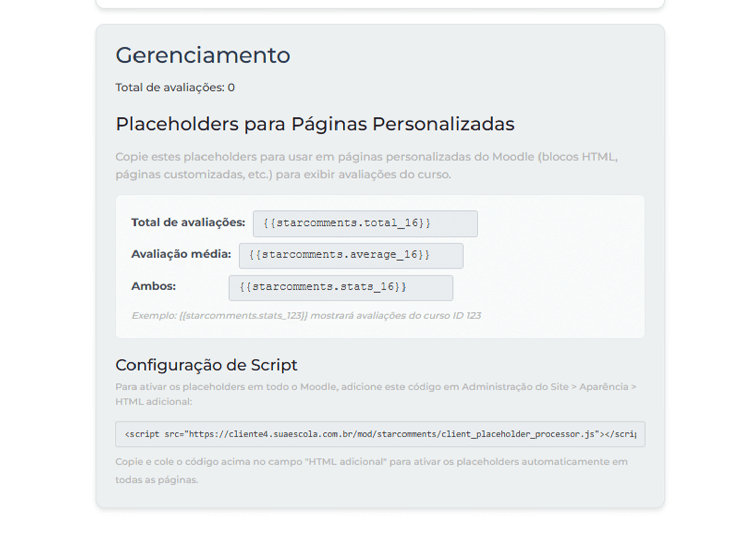 - Use o placeholder para exibir a média de satisfação no painel inicial do curso.